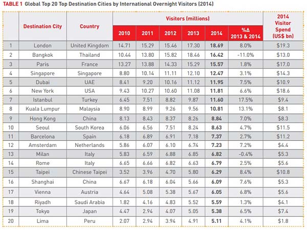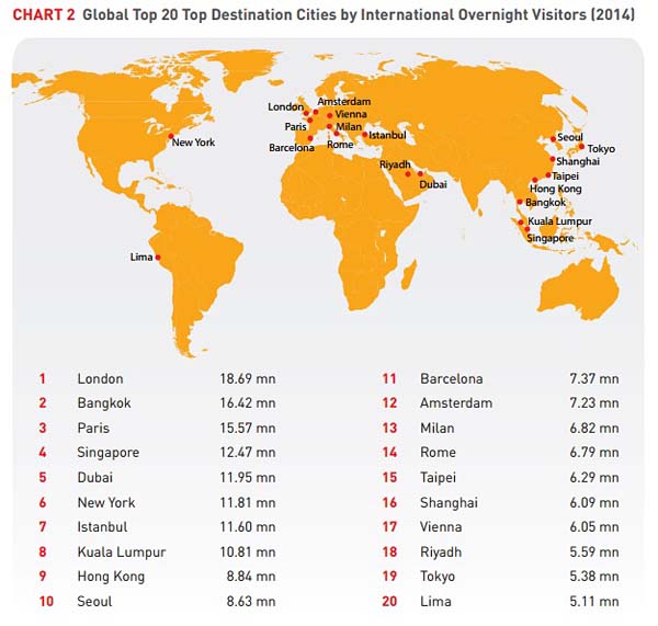 MasterCard precisó que este informe hace un cálculo de los visitantes en cada ciudad de acuerdo a las llegadas nocturnas internacionales, con permanencias de por lo menos una noche, incluyendo también los desembarcos y los pasajeros en tránsito. Las fuentes de esta investigación son las Juntas Nacionales de Estadística y las Oficinas de Turismo.