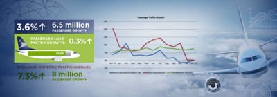 De un año a otro el número de viajeros creció 3,6%, al pasar de 181.002.241 (2014) a 187.496.904 (2015).). El tráfico tuvo un incremento del 5,8% y la capacidad un 5,4% “elevando el factor de ocupación al 79,8%, 0,3 puntos porcentuales más que en 2014