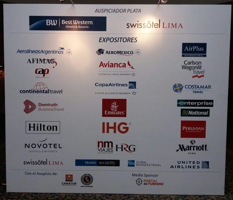 El evento contó con el auspicio de las principales empresas del rubro como Best Western y Swissotel Lima, y con la participación de empresas expositoras como Aerolíneas Argentinas, Aeroméxico, Airplus, AFIMAC, Avianca, Carlson Wagonlit Travel, Continental Travel, Copa Airlines, Costamar Travel, Domiruth, Emirates, Enterprise, Hilton, IHG, Peruvian Airlines, Novotel, Nuevo Mundo Viajes, Marriott, Travex, United Airlines. En esta oportunidad, el evento contó con el patrocinio de entidades representativas del sector como CANATUR y AHORA.