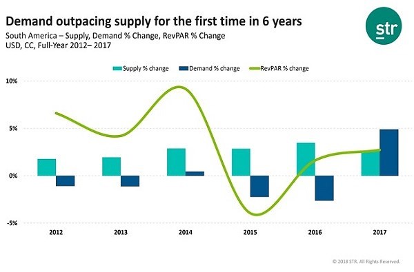 La demanda hotelera en Sudamérica está creciendo a un ritmo superior al de la oferta por primera vez desde el 2011, según un informe de la consultora STR, compañía especializada en la comparación de datos del mercado mundial.