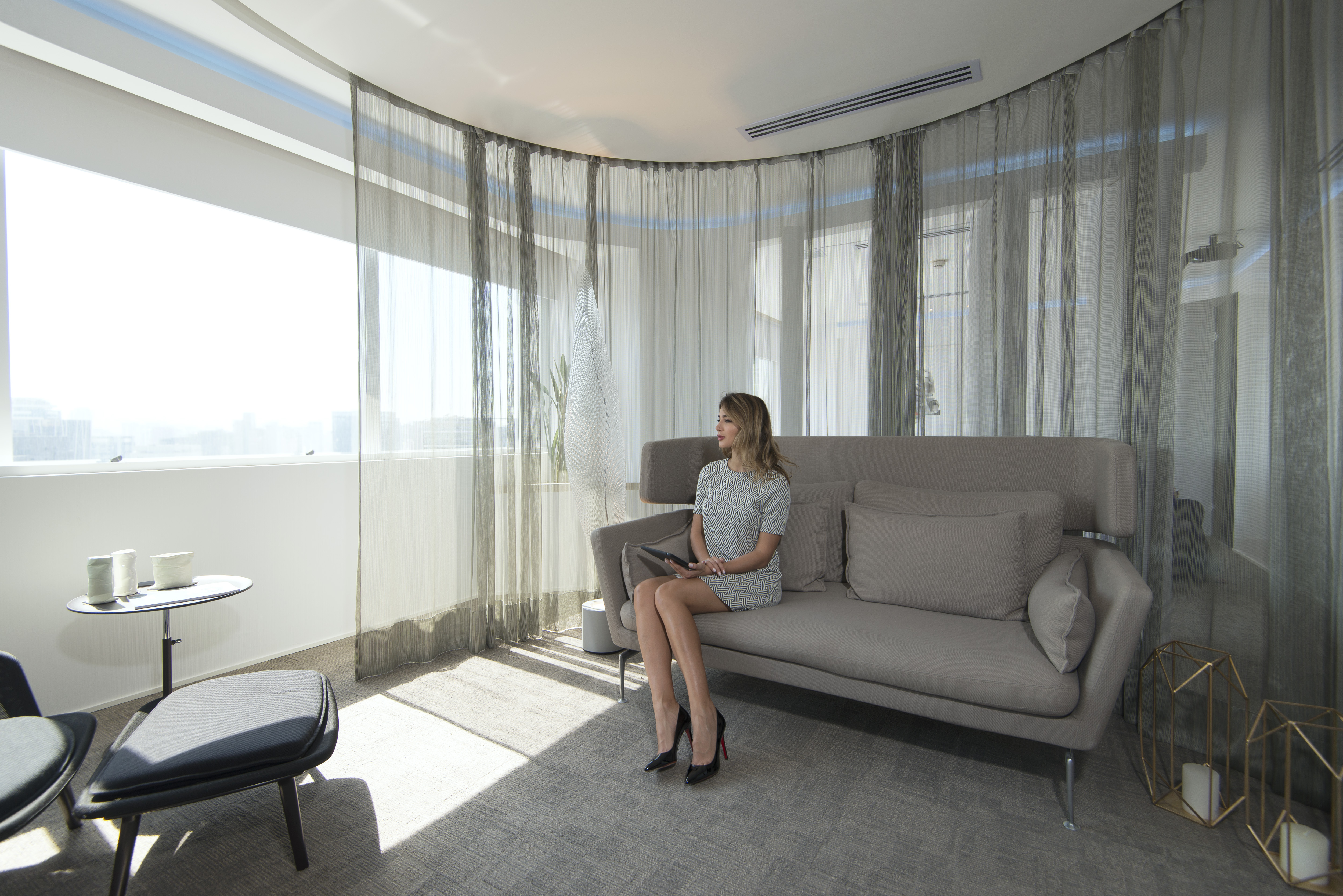 E-light es la proveedora oficial de las lámparas del ambiente, como la luminaria de piso Cosmic Leaf creada por el diseñador Ross Lovergrove y la de bancada Talak, diseñada por Neil Poulton. Las alfombras fueron creadas por la interfaz. Las cortinas para ventana son automatizadas y diseñadas por UNIFLEX. La cortina translúcida acústica Formoza, ubicada alrededor del living, y el papel tapiz son exclusividad de la Vescom.