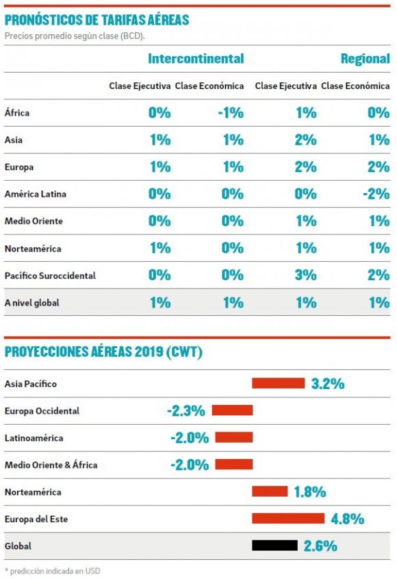 Siguiendo con los pronósticos para los viajes corporativos en el 2019, resultado del cruce de estudios publicados por GBTA Foundation, CWT y BCD Travel, compartimos el pronóstico general para un importante sector que afecta a los viajes de negocios: el sector aéreo.