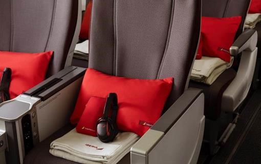 - Pantallas full HD de 12” (frente a 9” de Turista), auriculares con cancelación de ruidos y conectores para dispositivos electrónicos individuales