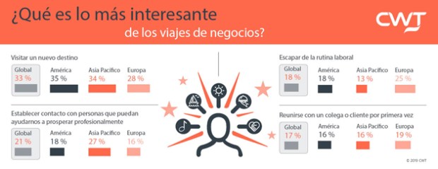 “Visitar un nuevo destino, conocer a alguien cara a cara por primera vez, establecer contacto con personas que hagan crecer tu negocio y te ayuden a prosperar profesionalmente, así como escapar de la rutina laboral son algunos de los factores más emocionantes asociados a los viajes de negocios de acuerdo con nuestros hallazgos”, dijo Niklas Andreen, vicepresidente ejecutivo y director de Experiencia del Viajero de CWT.